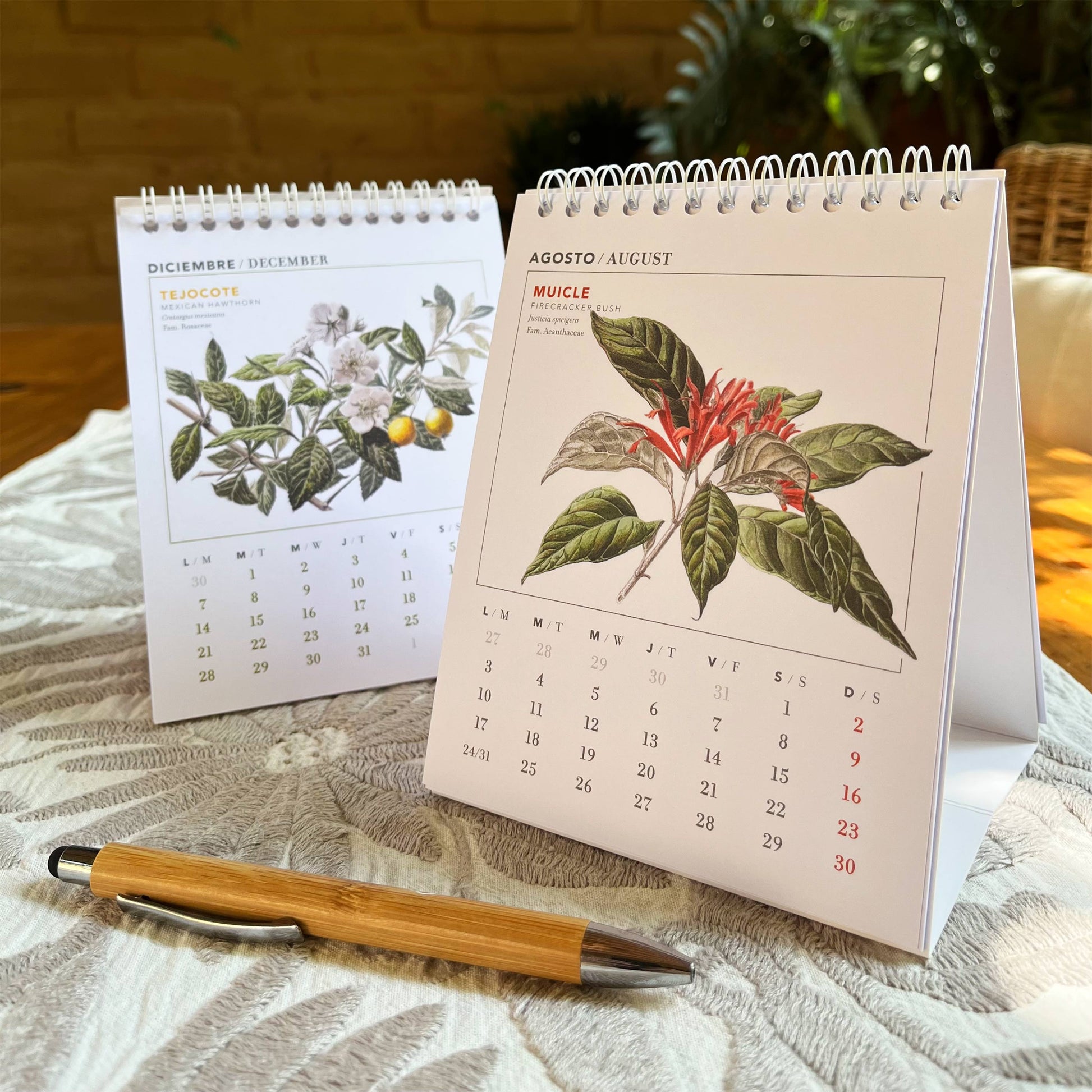 Ahora también puedes tener la versión de escritorio del calendario "Herbolaria de lo cotidiano 2026". Doce láminas botánicas con nombre común, nombre científico, y la retícula de su respectivo mes. Tamaño 12 x 15 cm.
