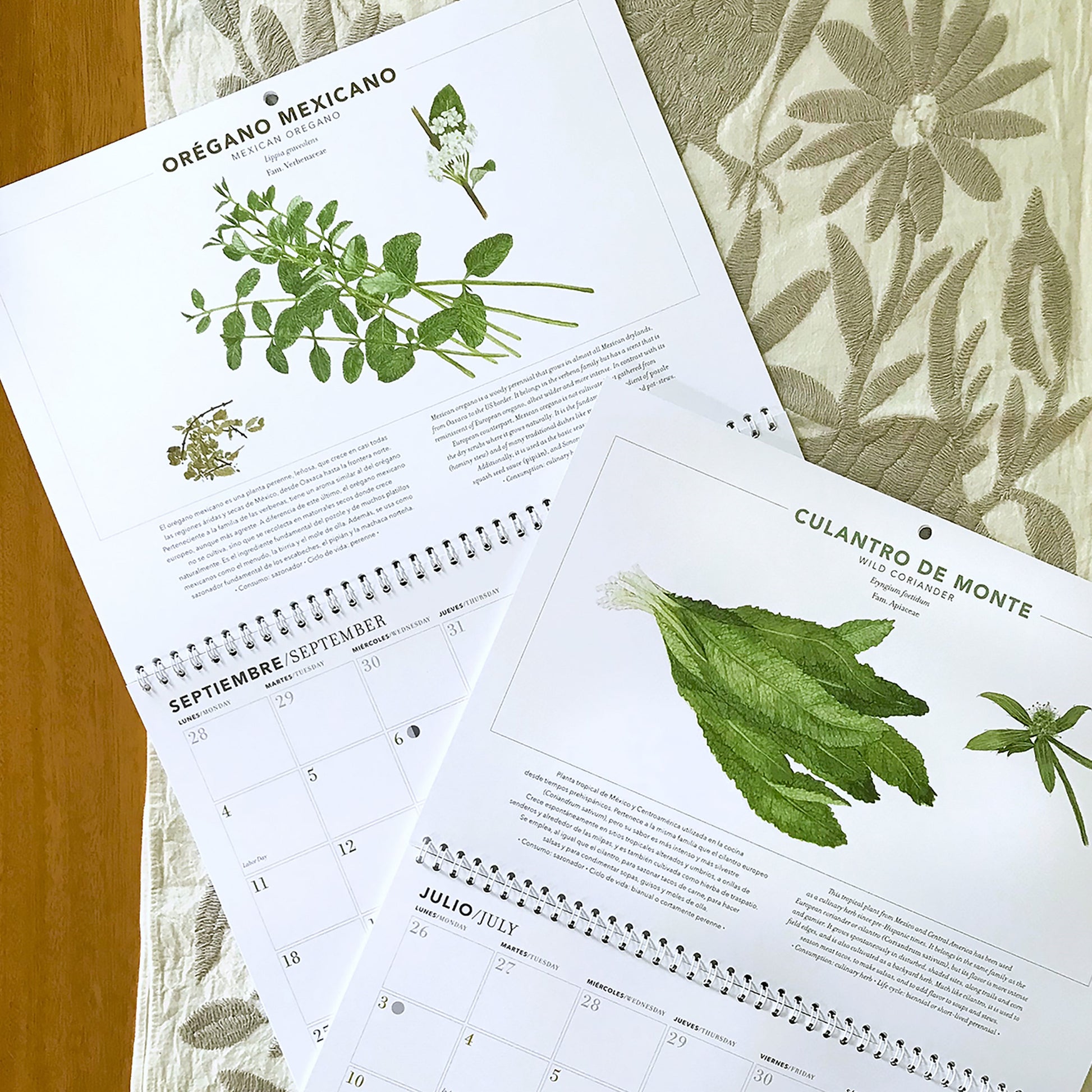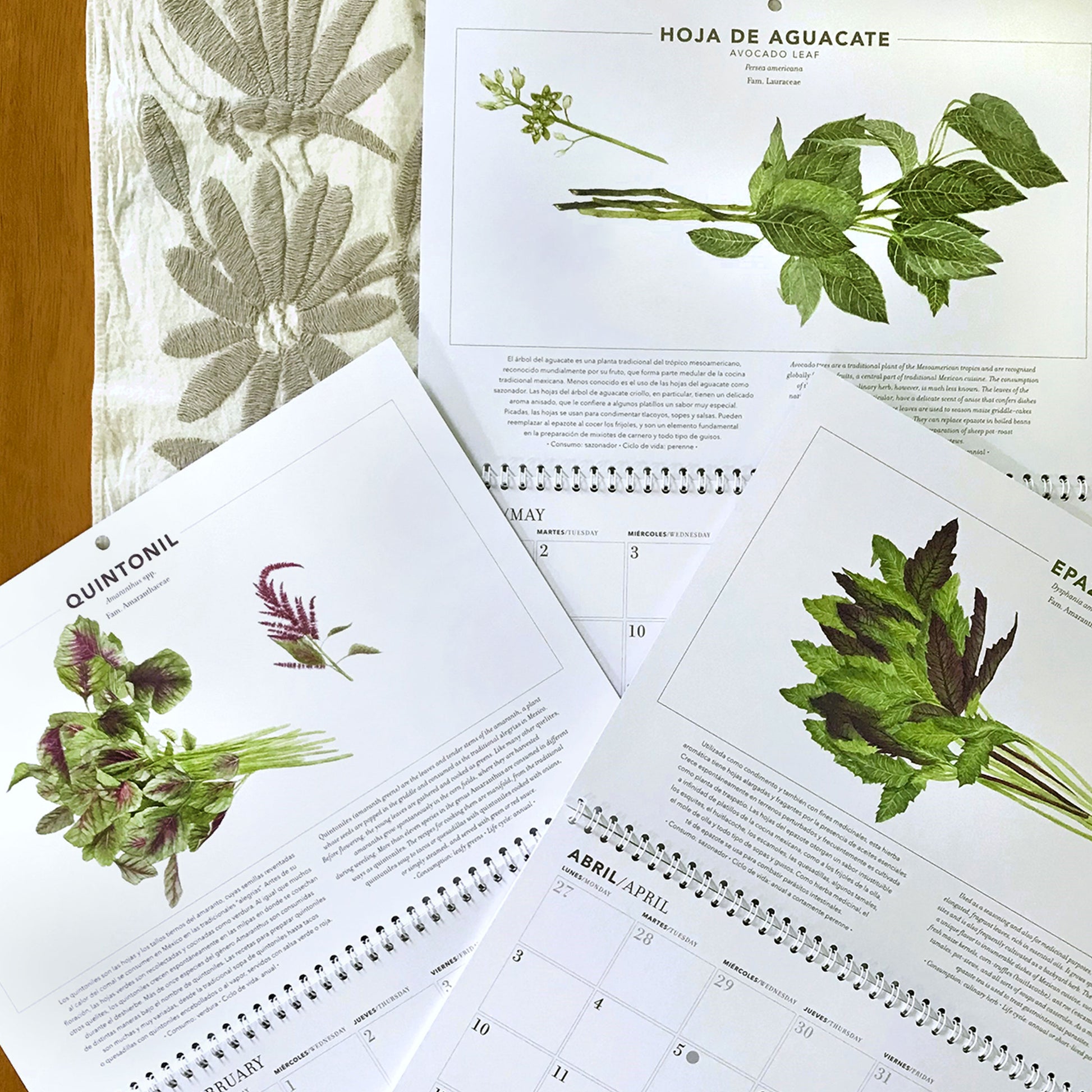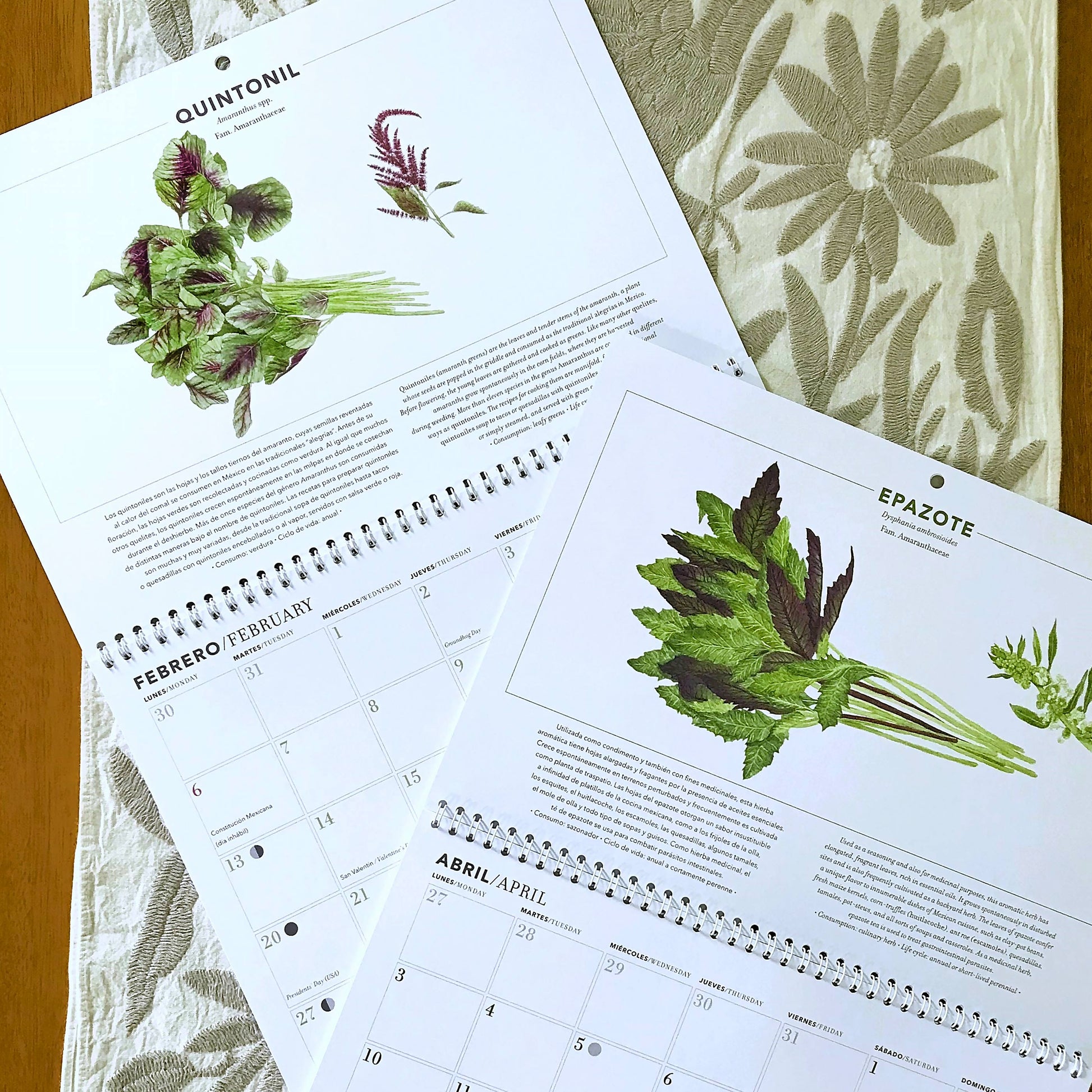 El calendario Quelites Mexicanos 2023 presenta 14 quelites detalladamente ilustrados, sus principales características botánicas, sus usos en la cocina y, como un homenaje a las láminas naturalistas de antaño, la representación de sus diversas y atractivas flores.
